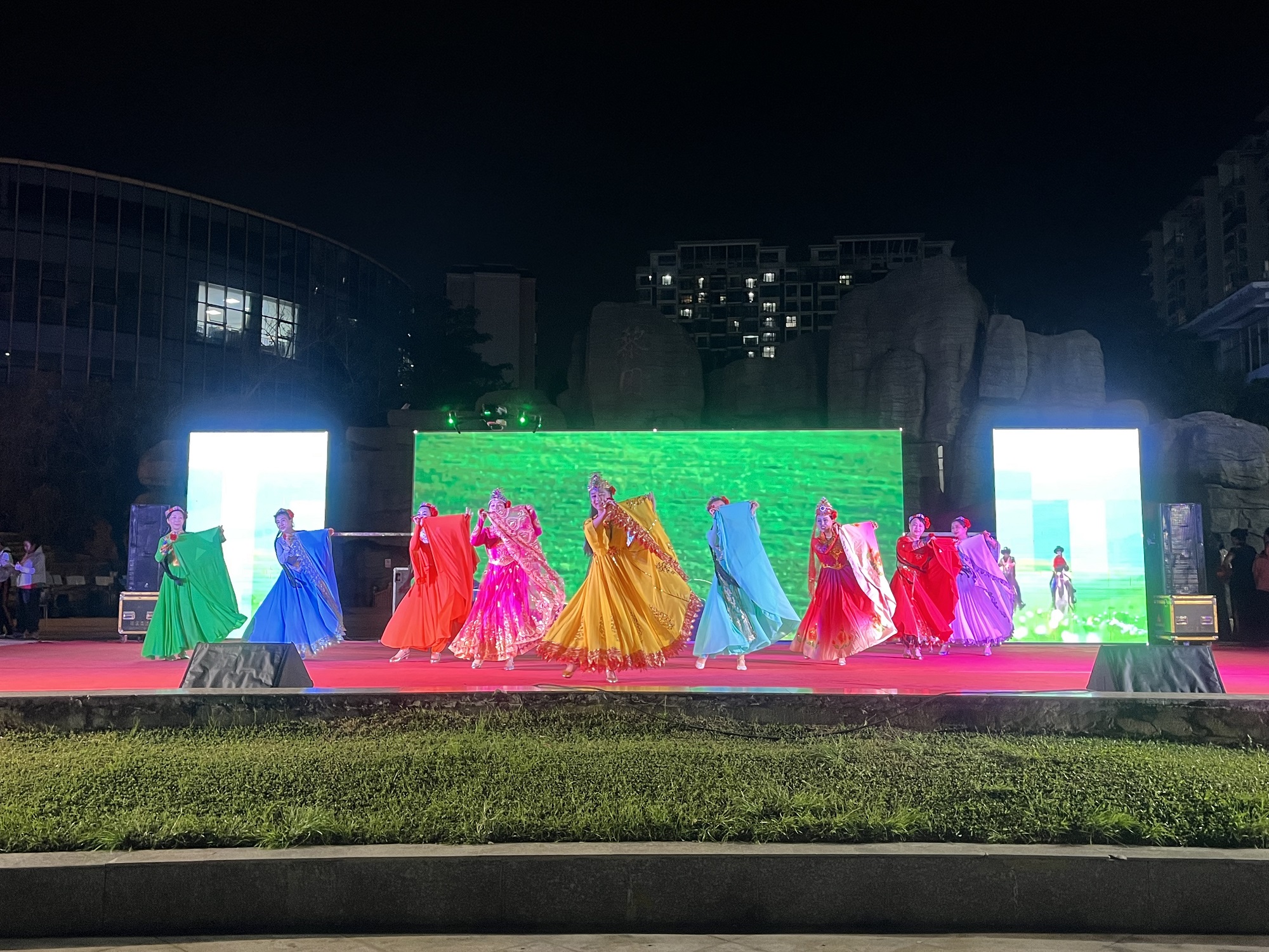 整场晚会精彩节目,内容丰富多元、形式异彩纷呈。既有悠扬动听的歌曲演唱,也有风格各异的舞蹈表演,朝鲜族舞蹈典雅温婉,新疆舞热情奔放,扇子舞柔美灵动,非洲鼓舞秀活力四射;萨克斯合奏旋律悠扬,诗朗诵慷慨激昂,时装秀尽显时尚韵味。