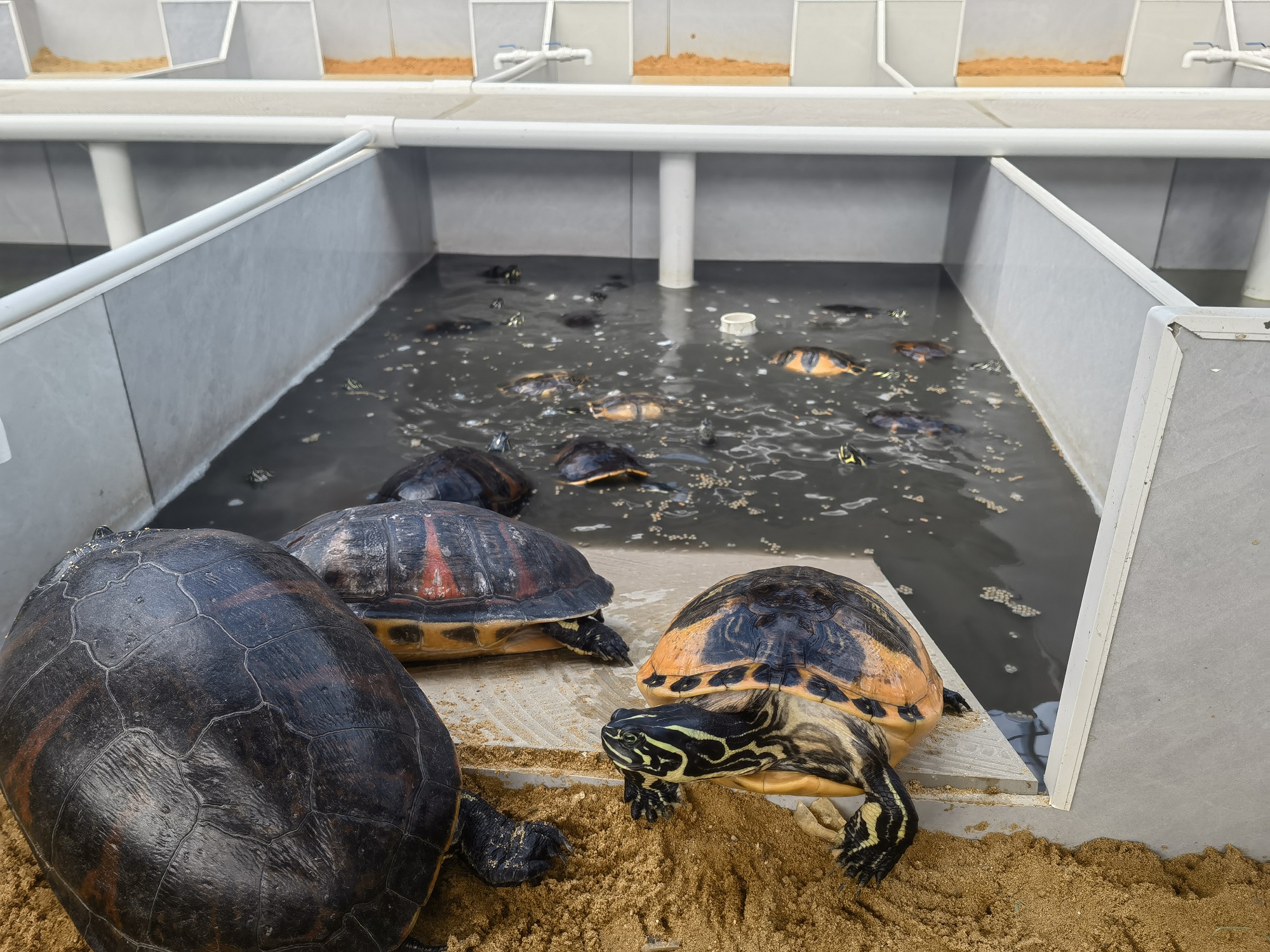 走进陵水椰林镇里村的海南富海通农业发展有限公司,6亩养殖区内,200个标准化养殖池整齐排开,图钻、锦钻等20多个优质观赏龟品种在这里茁壮成长。这家2023年12月成立的本土企业,已实现规模化布局,目前共吸纳5户农户稳定就业。