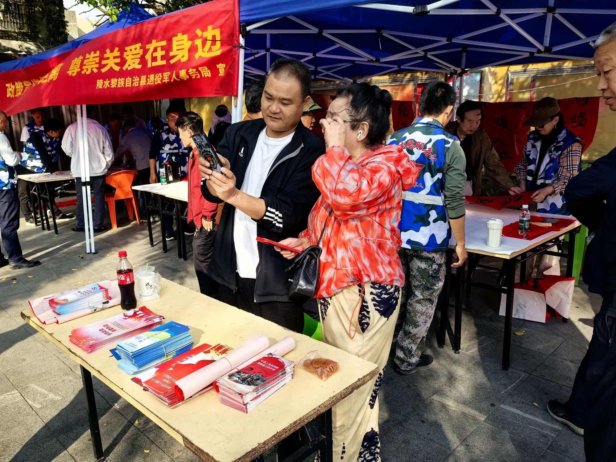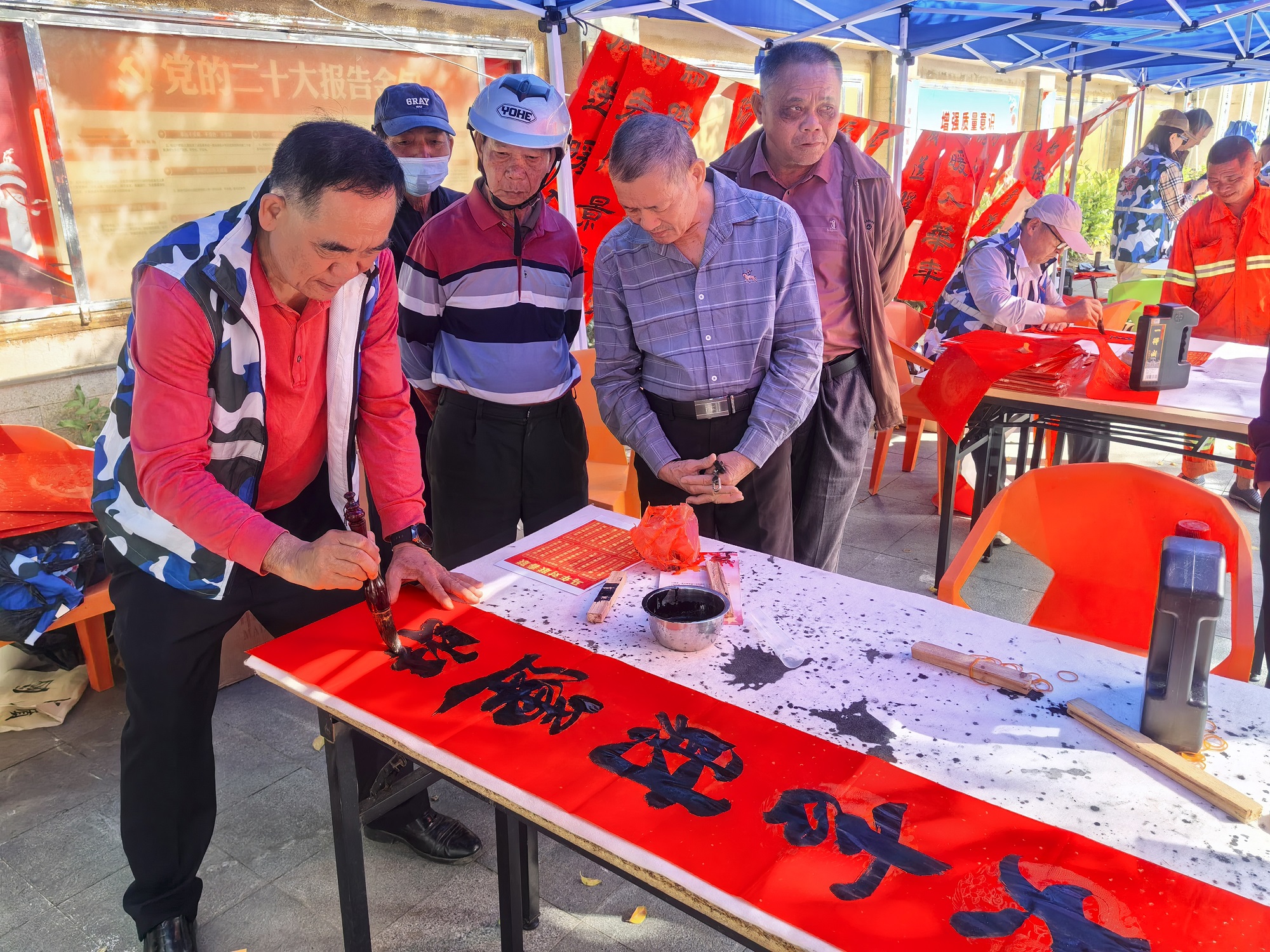 1月22日至23日,英州镇与新村镇的活动现场红纸铺展、墨香四溢。陵水县退役军人事务局组织有书法特长的号角退役军人志愿者挥毫泼墨,将真挚祝福凝于笔端、落于纸上,一副副寓意吉祥、彰显时代新风的春联在行云流水的书写中跃然成型。这些春联不仅赠送给辖区退役军人、其他优抚对象家庭,还送到部分“候鸟”退役军人的手中。红纸黑字,既是传统文化的传承,更是尊崇与关爱的生动表现。