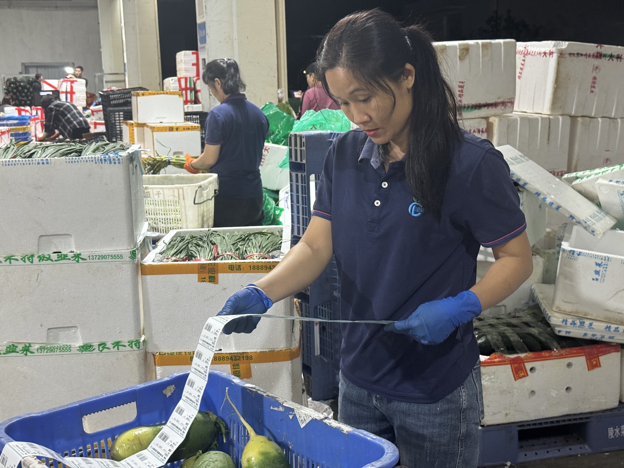 采购端多元发力,仓储物流保畅通。在陵水菜篮子农产品标准化仓储物流中心,一辆辆满载新鲜蔬菜的配送货车有序驶入,工人们分工协作、高效作业,熟练开展卸货、搬运、分拣、规整等工作,各环节衔接顺畅、井然有序,全力筑牢节日食材储备与配送保障线。截至目前,中心已累计调运储备蔬菜约370吨、鸡蛋约12吨、肉类约5吨,充足的储备量为春节期间市场供应筑起 “压舱石”,确保节日期间货源稳定充足。