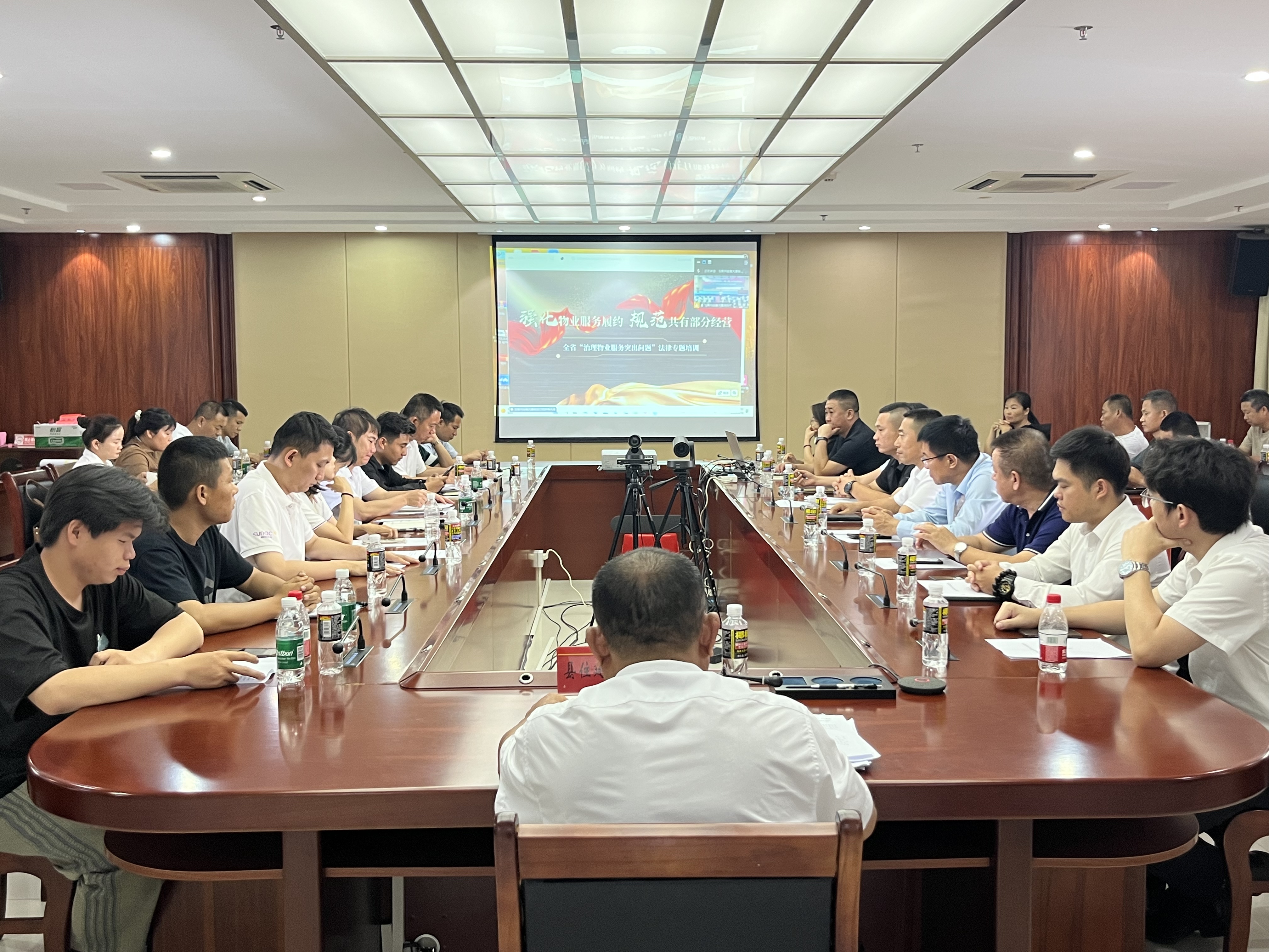 县委组织部、县委社会工作部、县委政法委、县住建局等相关部门,各相关乡镇以及物业服务企业有关负责人参加会议。